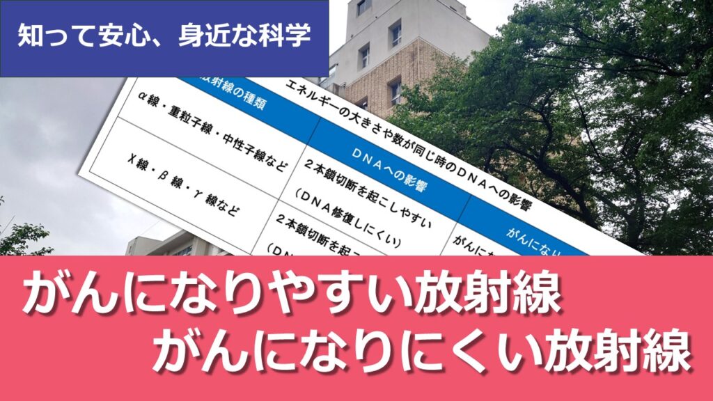 放射線とがんの関係 2025.07.102026.04.06 そもそも「がん」ってどういう病気? 放射線の種類とがんの発生させやすさ 知っておくと便利な単位、Sv(シーベルト)! 「放射線とがんの基礎知識」へ戻る 関連ページ がんを予防する3つのポイント 詳しい背景と解説 サービスへのご案内