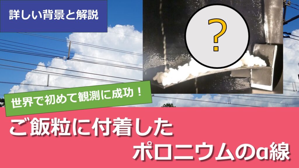 物理実験の分野において空気中のラドンから生じるポロニウムが霧吹きで湿らせた放射線測定機器に付着して測定結果に影響を及ぼす現象は大学研究室時代から把握していましたが、弊社は世界で初めて実際にご飯粒に付着したポロニウムから飛び出るα線を観測し、その様子を写真に収めることに成功しました。