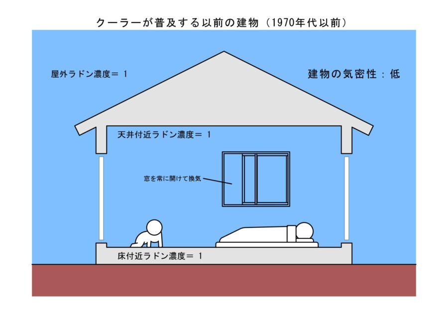 かつての日本、特にクーラーが普及する1970年代以前の建物はラドンに対して安全と言えました。