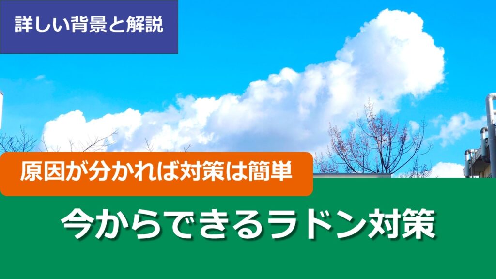 WHOは屋内のラドン濃度が外気の4.5倍を超えるようなら換気法改良工事を行うよう助言しています。